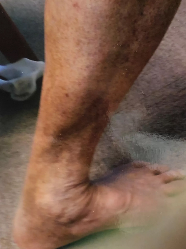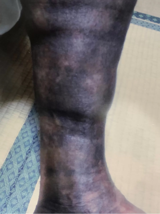 肺がんの治療で抗がん剤使⽤により⽪膚が紫⾊に変⾊していましたが、